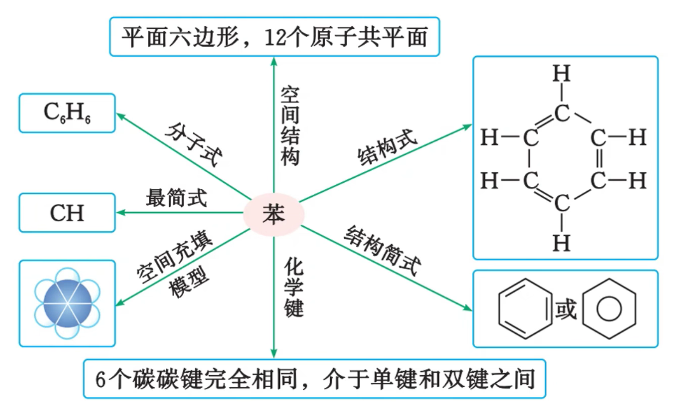 ,熔点 ,常温下密度为 。苯是一种重要的化工原料和有机溶剂,常用作萃取(用苯萃取碘水中的碘单质、萃取溴水中的溴单质) 分子结构